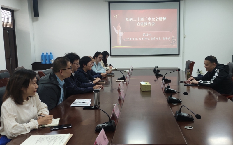 校党委委员、纪委书记、监察专员胡海生为教育科学学院教师宣讲党的二十届三中全会精神。胡海生围绕深刻认识党的二十届三中全会的重大意义、切实把握党的二十届三中全会精神的丰富内涵、全面准确理解《决定》的核心要义,提高高等教育服务高质量发展能力水平等四个方面进行了深入阐释。他强调,教育在推进中国式现代化进程中具有基础性、战略性支撑作用。教育科学学院作为培养教育专业人才的重要基地,要不断提高教育教学质量,培养更多具有高尚师德、扎实专业知识和创新能力的优秀教育人才,为我国的教育事业发展做出更大贡献。