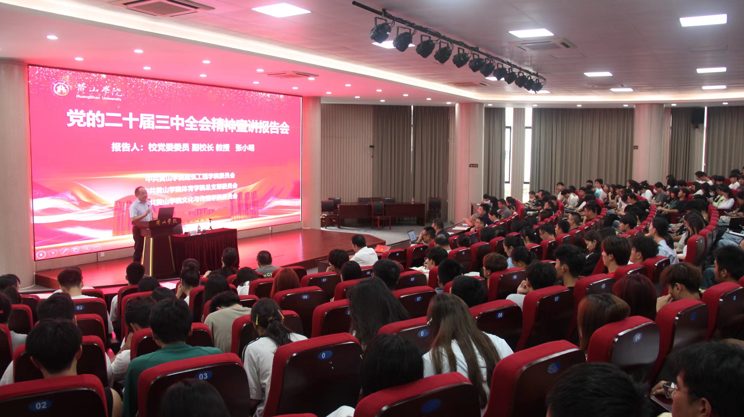 校党委委员、副院长张小明为体育学院、建筑工程学院、文化与传播学院师生宣讲党的二十届三中全会精神。张小明紧扣党的二十届三中全会的重大时代意义和深远影响、深入学习领会习近平总书记在全会上的重要讲话精神、全面准确理解《决定》提出的进一步全面深化改革重大举措、全力以赴抓好全会精神贯彻落实等四个方面进行了系统讲解。他向师生介绍了新时代学校不断深化综合改革、推动高质量发展取得的新成效,分享了面向未来、推进学校高质量发展的思考。